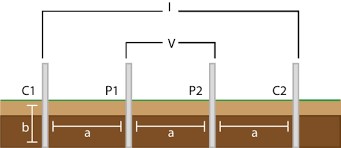 Para determinar la resistencia, se emplean métodos normalizados como el de las cuatro puntas (Wenner), colocando electrodos en línea recta a profundidad controlada y midiendo con un telurómetro en ohms. Esto permite definir el diseño y número de electrodos necesarios.