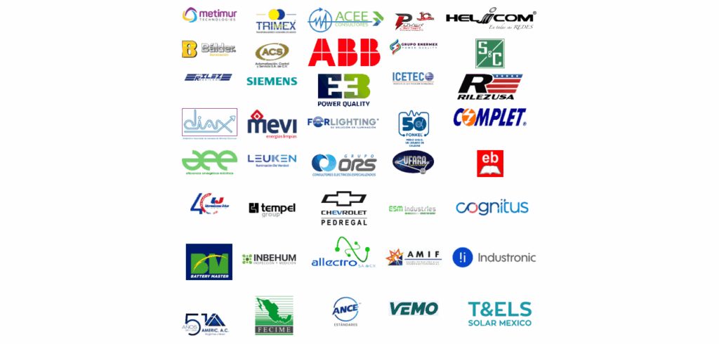 SIEMENS, Grupo Ors, MEVI, LJ Iluminación, ACS, S&C, COGNITUS, UFARA, ACEE Consultores, ESM Industries, Diaxinova, E3, FONKEL, Industronic, COMPLET y ABB, quienes compartieron sus avances y casos de éxito en sesiones técnicas especializadas.